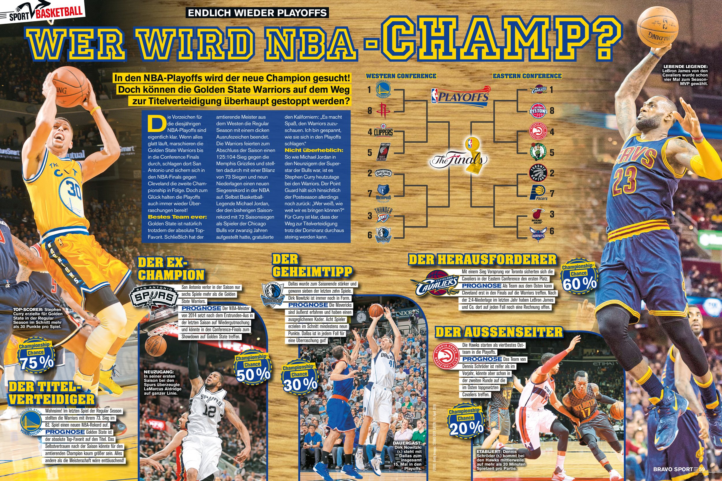 Dynamisches Bild-Layout: Einsatz von actiongeladener Sportfotografie, Freistellern und grafischen Effekten, um Bewegung und Spannung zu erzeugen.