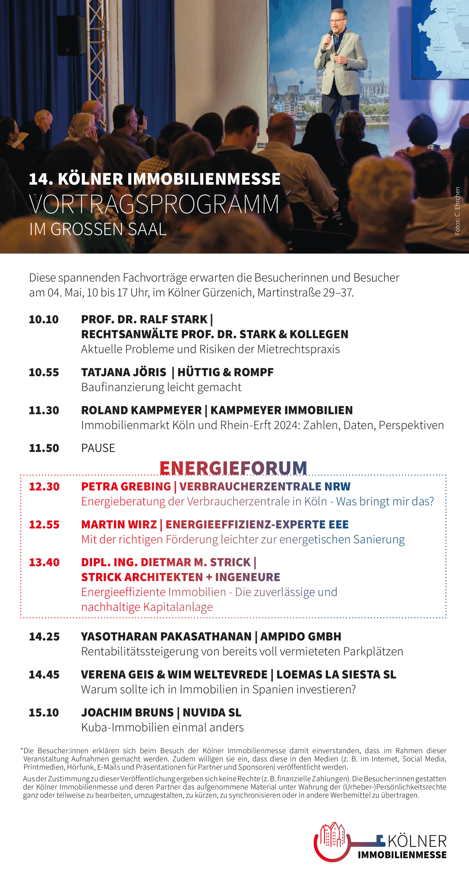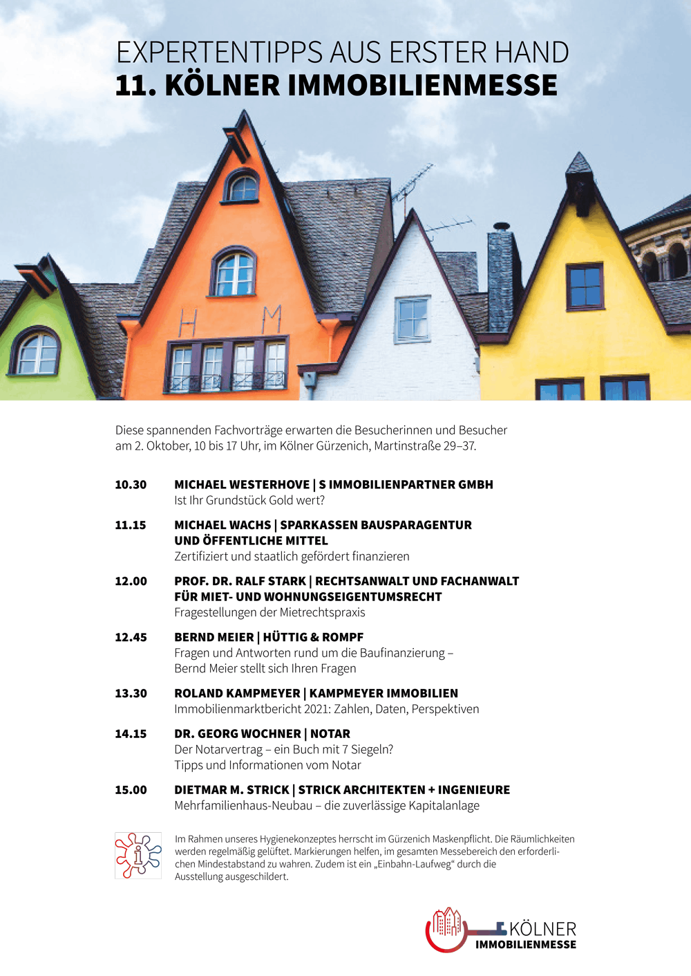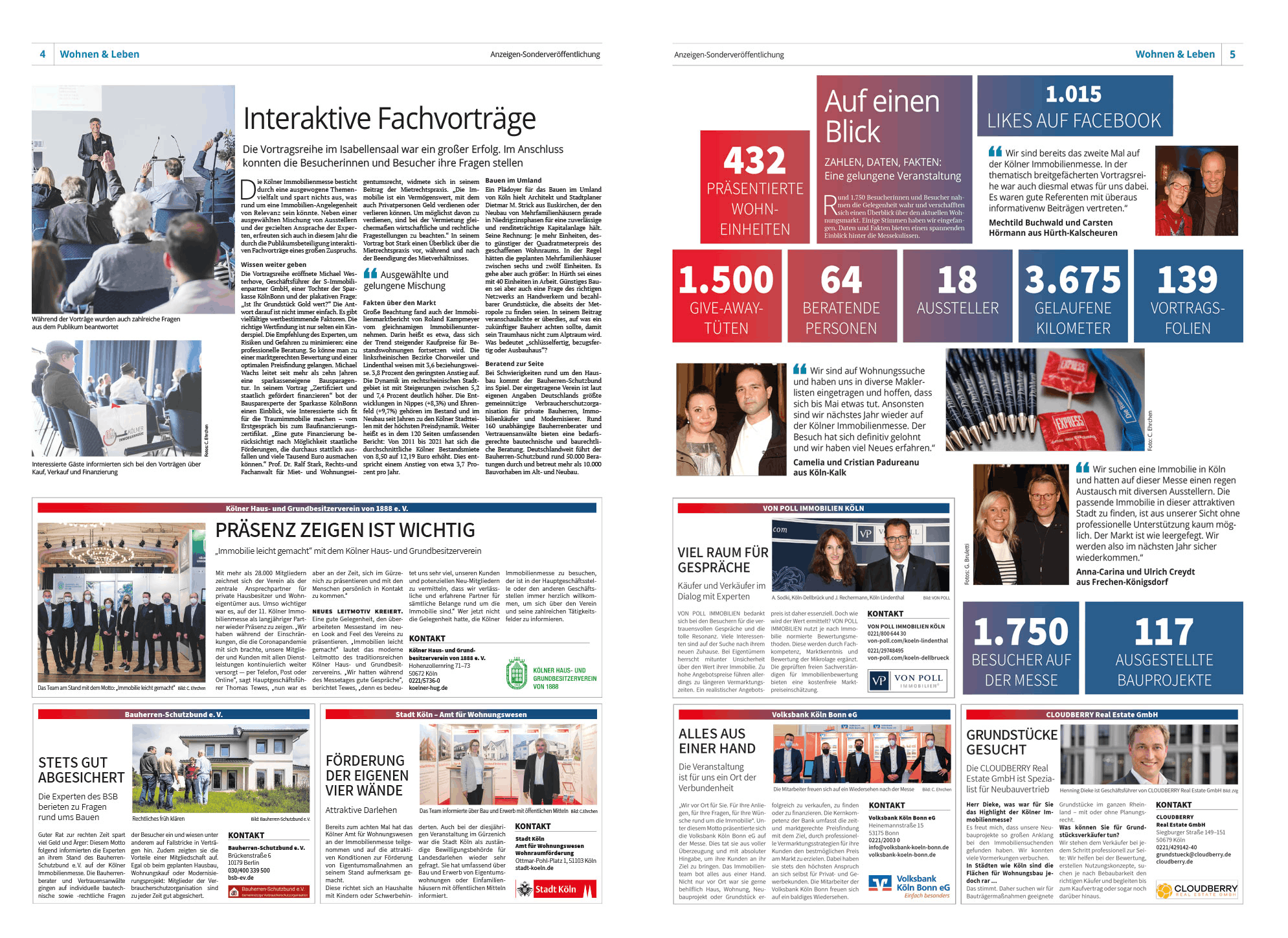 Aufbauend auf der Neuausrichtung erfolgte 2025 die strategische Anpassung des Corporate Designs, um die Zugehörigkeit zu den Medienpartnern der Kölner Stadt-Anzeiger Medien – Kölner Stadtanzeiger, Kölnische Rundschau EXPRESS und Radio Köln – optisch zu integrieren. Meine Rolle umfasste die gesamte visuelle Kommunikation; von der Konzeption und Gestaltung des gesamten Messematerials in Print und Digital, wie Ausstellerbroschüren, Plakaten und Anzeigen, bis hin zur Gestaltung des Webdesigns der Messe-Website. Ich sorge dafür, dass die etablierte Kölner Immobilienmesse in allen Kanälen eine professionelle und zeitgemäße visuelle Präsenz zeigt.