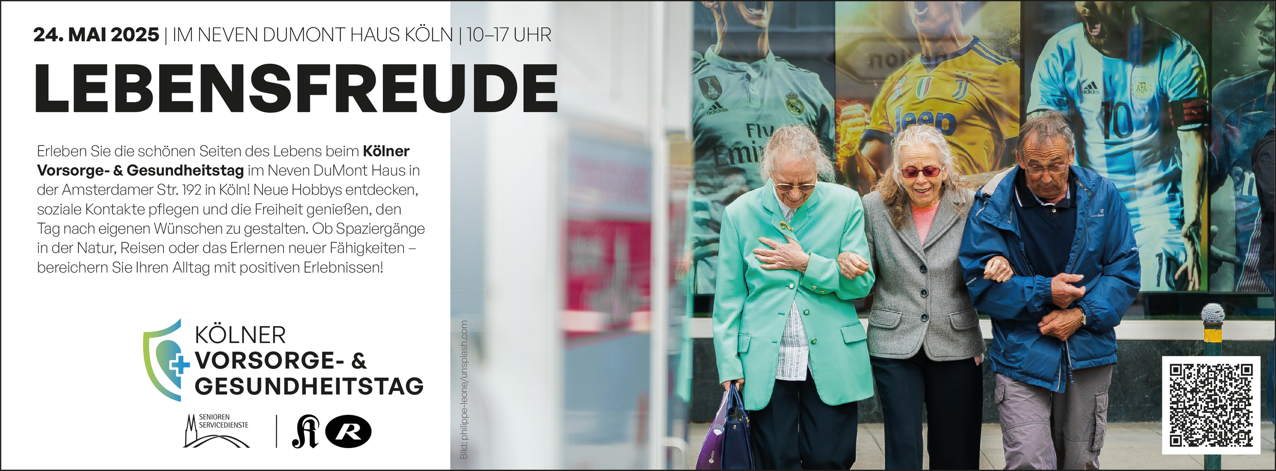 Seit 2025 begleite ich den Kölner Vorsorge- und Gesundheitstag als kreativer Partner für das gesamte Spektrum der Werbemittel und der Messe-Beschilderung. Wenn am 30. Mai 2026 die Türen des Neven DuMont Hauses öffnen, sorgt mein Grafikdesign dafür, dass Besucher den Weg zu den Experten für Gesundheit und Vorsorge mühelos finden.
