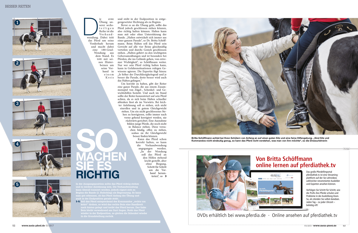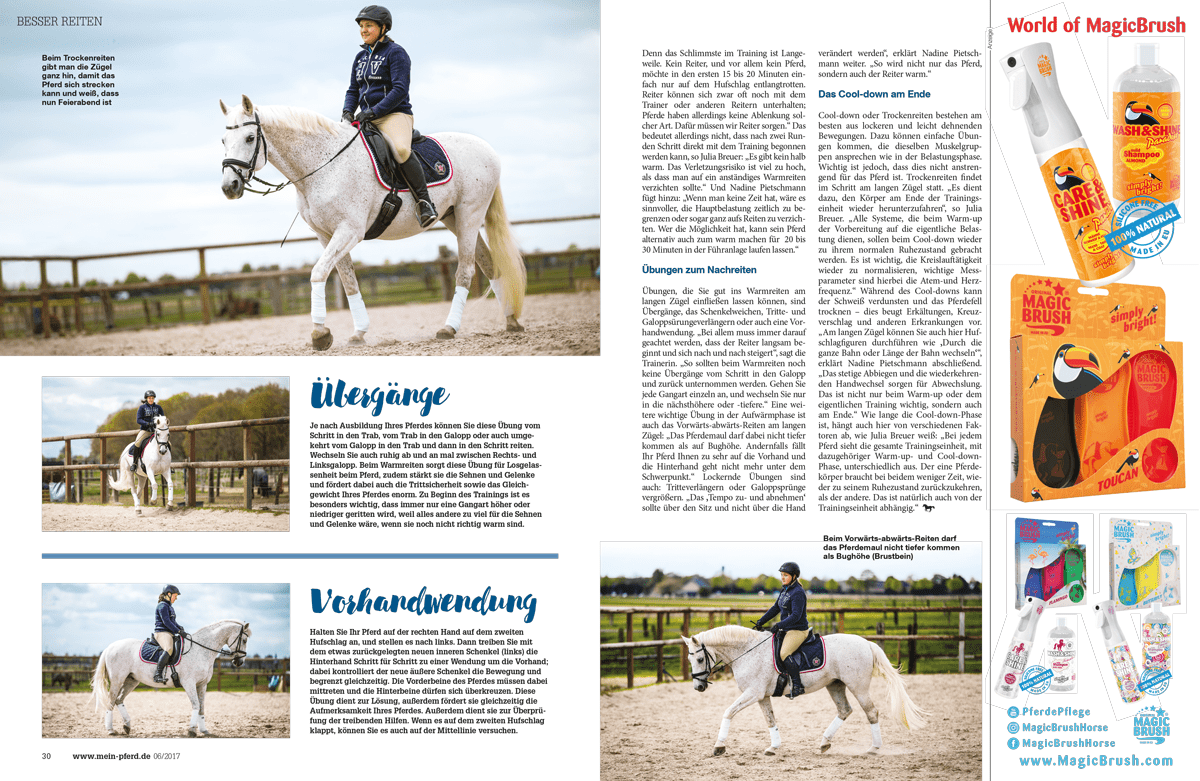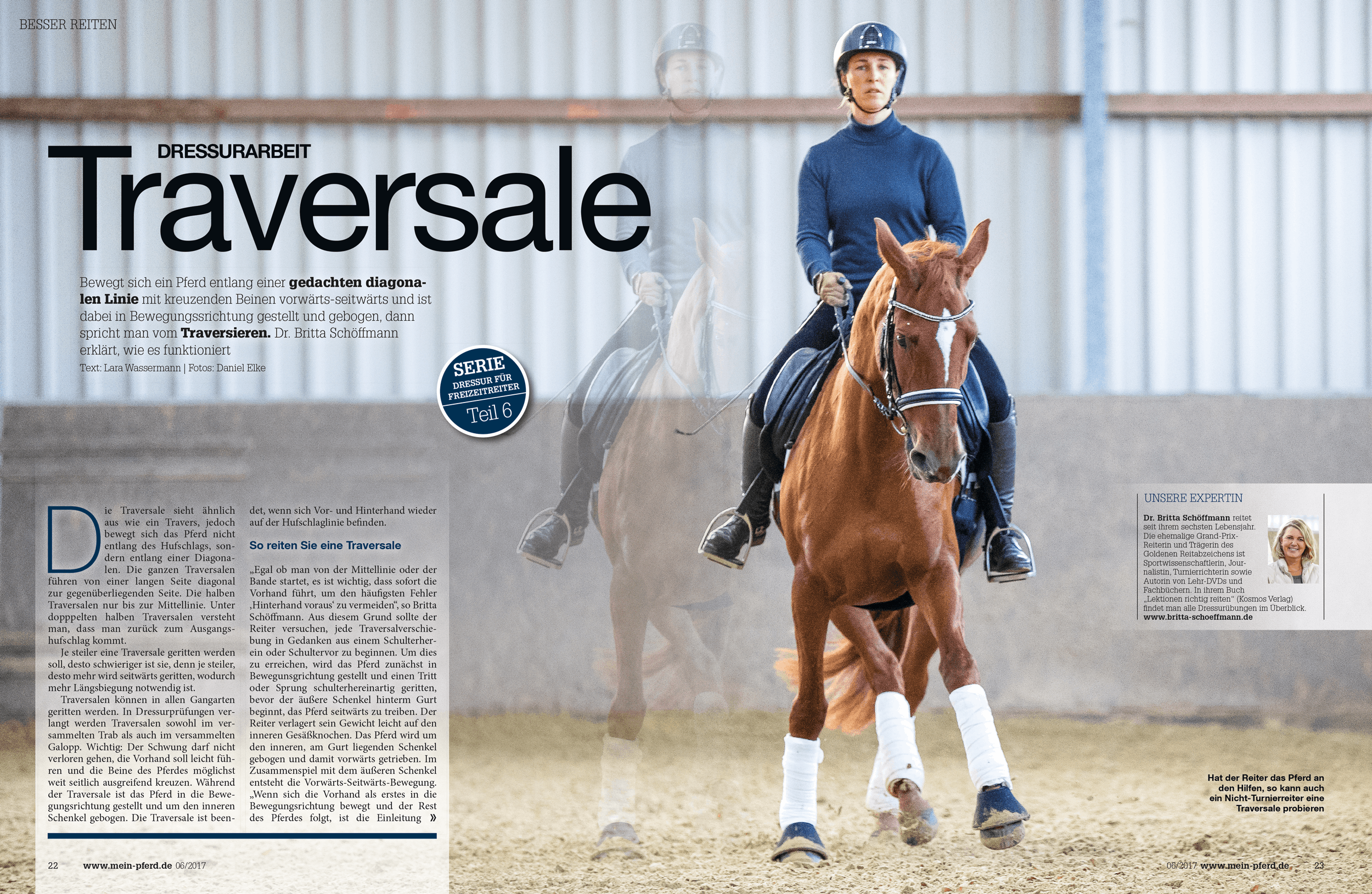 Beim Layouting für „Mein Pferd“ geht es um mehr als nur das Platzieren von Elementen. Jeder Artikel folgt einem klaren visuellen Storytelling. Großformatige, dynamische Pferdeaufnahmen benötigen Raum zum Atmen, während komplexe Fachthemen zu Pferdegesundheit, Training und Haltung eine stringente, leserfreundliche Struktur erfordern.