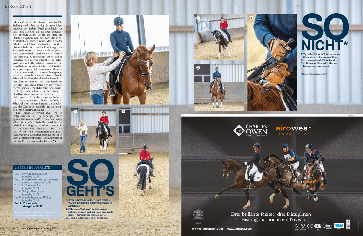 Die Gestaltung eines Special-Interest-Magazins wie „Mein Pferd“ erfordert ein tiefes Verständnis für die Balance zwischen emotionaler Bildsprache und sachlicher Informationsvermittlung. In dieser Arbeit lag mein Fokus darauf, aus rohen Textmanuskripten und hochwertigem Bildmaterial ein harmonisches Gesamtbild zu schaffen, das die Leser in die Welt des Reitsports entführt.
